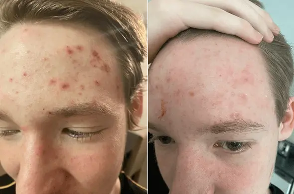 Below are a few results using red and blue light therapy. These images were taken just a few days apart!